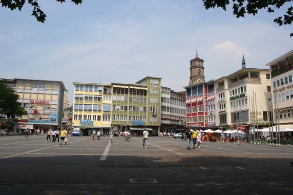 Schillerplatz with a monument to the romantic poet Friedrich von Schiller, who was born near Stuttgart and lived here for a while. This is one of the nicest spots in downtown Stuttgart.