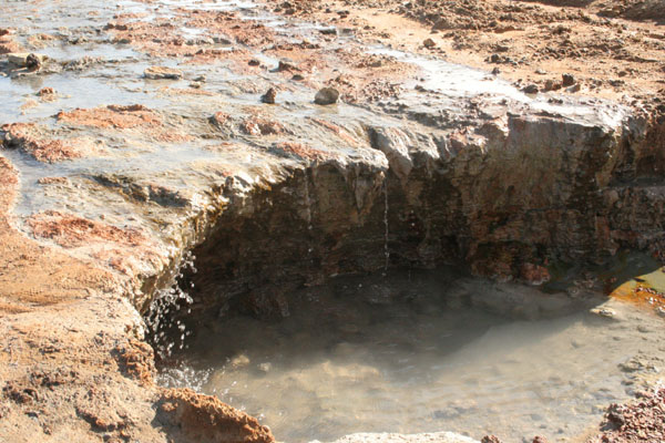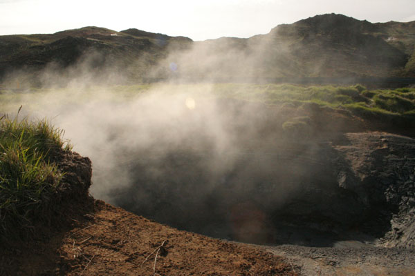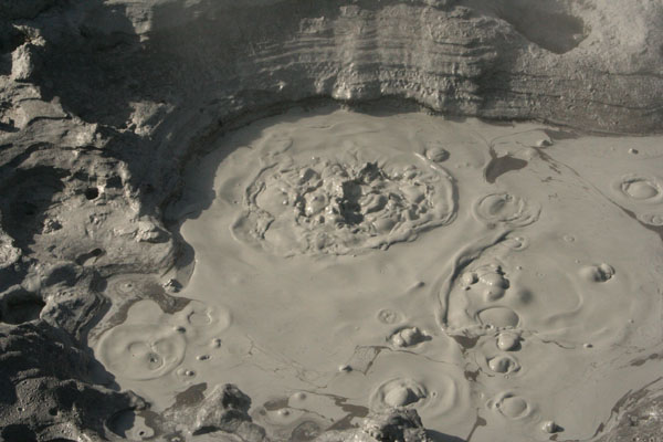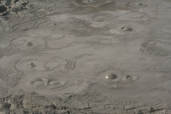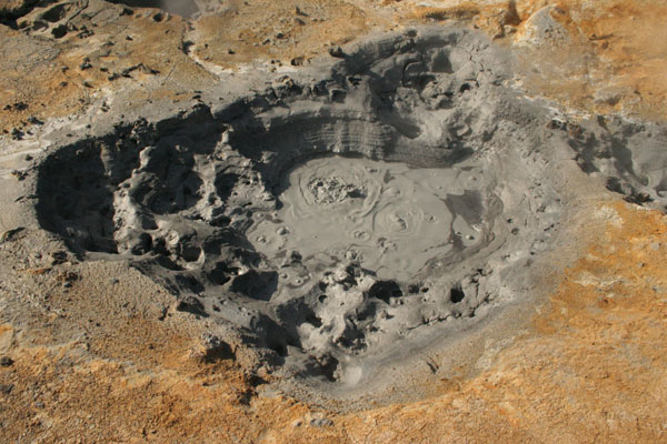 The boiling water rising from underground is so acidic that it disolved the dirt into this gray mud.