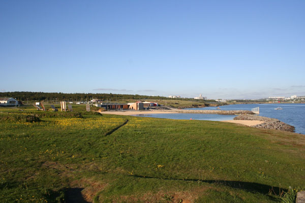 On our first day in Iceland, we went to Nauthólsvik geothermal beach. Hot water is piped into hot tubs right on the beach, and then spills into the small, dammed bay, heating the seawater to bathing temperatures.