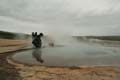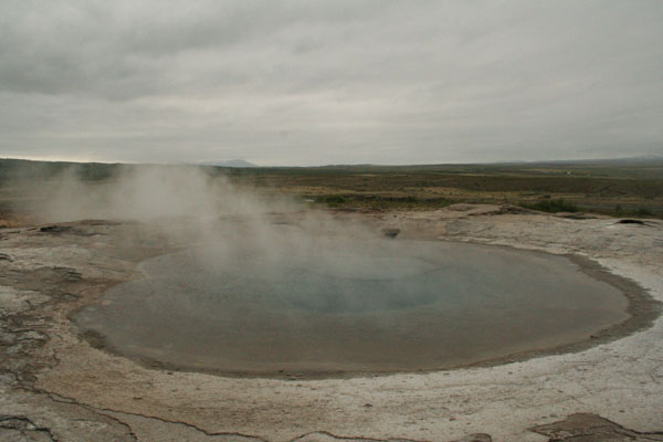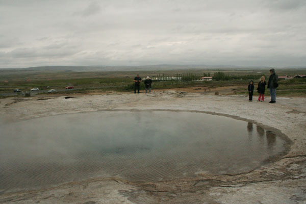 Laura and the kids check out the placid surface of the famous Geysir - the "original" geyser.