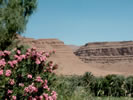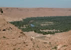 The river Ziz (left) has cut about 300 feet (100m) deep into the dusty, flats of the Tafilalt. Its banks at the bottom of the canyon are lush and green. Farmers carefully divert the water from the river onto their fields, using an intricate systems of canals that carry the precious wet practically to every individual plant. The second day of Sahara biking started out mor pleasant, as the road descends form the hamada into the river valley. I got some georgeous views of the Tafilalt as I slowly rolled down the road that snakes along the steep rocky cliffs. Down in the valley, the road winds through the small villages along the river, crossing the Ziz and finally I headed into the town of Erfoud. On the last stretch from Erfoud to Rissani, all of a sudden the sky turned a funky yellow color, the wind kicked up some dust eddies. I realized that one of those suffocating dust storms was headed my way. I wrapped my head in a shirt and pushed on. Soon a curtain of dust slammed into me like a sandblaster. I had to lean into the wind, my head low over the handlebar and my eyes on the two visible meters of street in front of me. It took me the better part of the afternoon for the 20 KM to Rissani, and I arrived exhausted, covered in dust, |