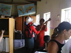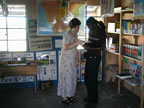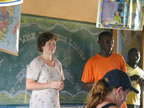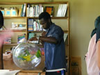 One day, we visited the libraries Laura's organization, the World Library Partnership, supports. All of us went on this excursion: the students from Oberlin College, the high school kids from Mbaswana, Jacob, Julia and I. We visited three libraries that morning and learned about the people who use them and run them, and what a huge impact the libraries had on the success of the kids in these schools.