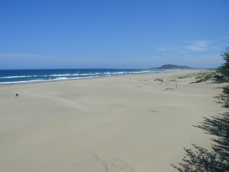 View of the St. Lucia beach south, toward the estuary, from the dunes next to the parking lot.