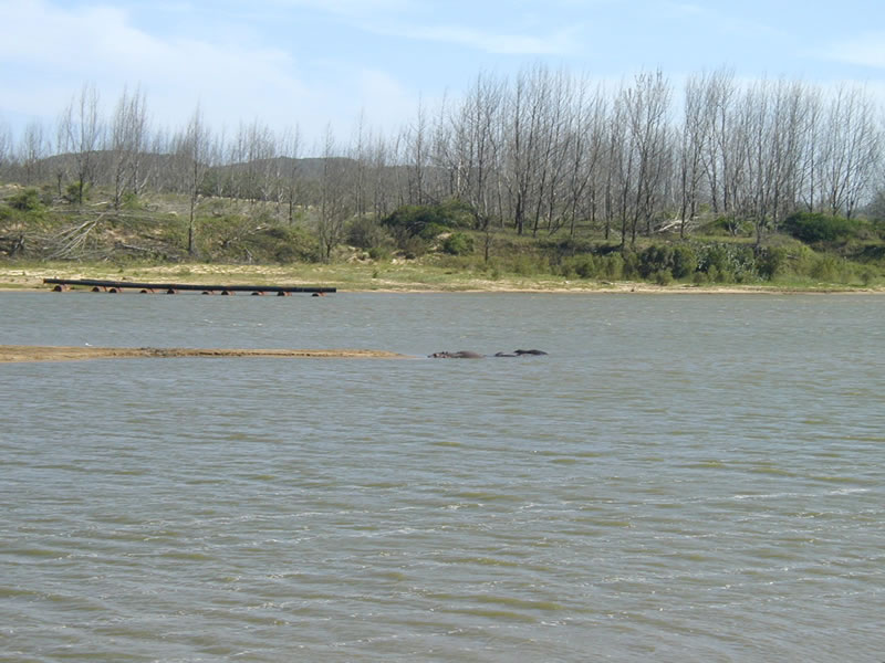 That's several hippos, hanging out in the middle of the St. Lucia estuary.