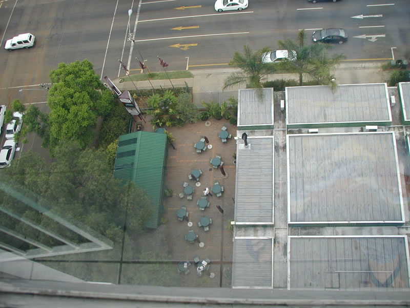 The patio of the 224 and the corner of Schoeman and Leyds Streets. The building on the right is the restaurant.