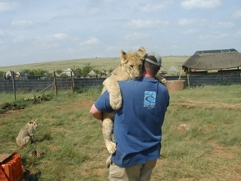 The lions were getting hosed down to cool them off in the intense heat. While most of them were perfectly happy about getting splashed with water, one of the lions ran away. One of the keepers had to pick the cub up and carry it to the hose. This shot also shows nicely how big these guys are - look at those paws!